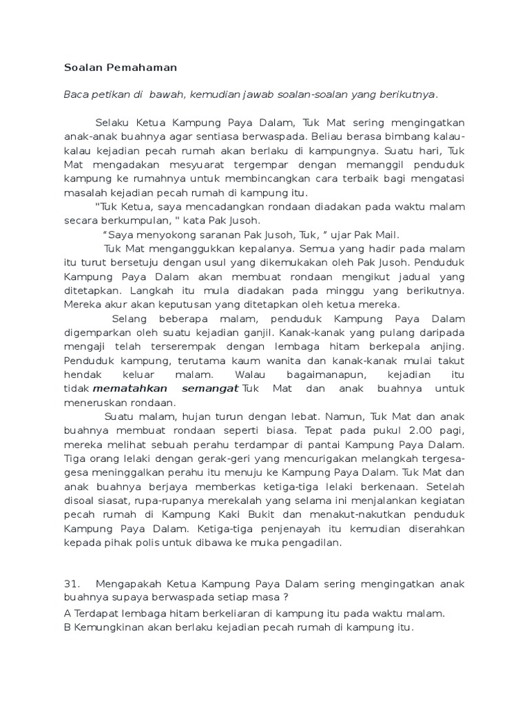 Soalan Bm Bahasa Melayu Pemahaman Tahun 5